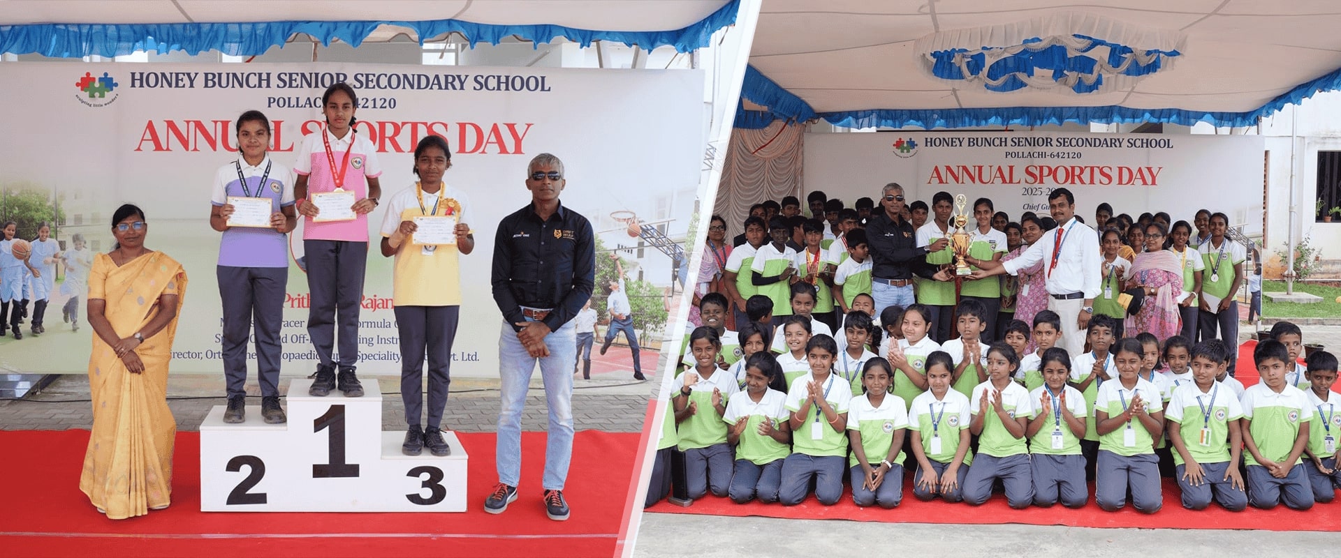 Located in the quiet outskirts of Pollachi, Honey Bunch Senior Secondary School is a day-school affiliated to the Central Board of Secondary Education (CBSE). Honey Bunch is a full school offering grades Pre-Kg to Grade 12 and is centred around the philosophy that all students deserve a safe and supportive learning environment. At Honey Bunch, we value academic rigor, and at the same time recognize that effective learning happens by observing, questioning and engaging with the world outside. Our raison d'etre is to empower students to develop a strong sense of agency and to help them acquire the skills and dispositions needed to navigate the world with confidence, awareness and integrity. In everything we do, we are motivated by our vision to nurture responsible young citizens who value diversity, are able to think independently and will aim for excellence in everything they pursue.