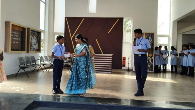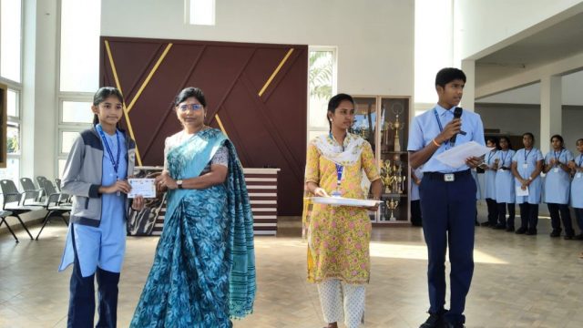An Event Assembly was conducted by the students of Grade VII on the theme “International Artist Day.” Students who excelled in various sports and extracurricular activities were also honoured with prizes, medals and trophies for their achievements. It was a delightful celebration of talent, creativity and excellence!