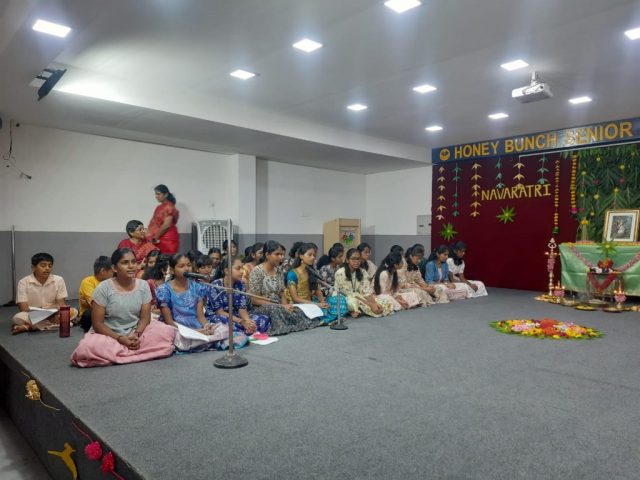 Honey Bunch joyfully celebrated Navaratri with vibrant colours, devotion, and togetherness. The students participated with great enthusiasm, showcasing traditional attire, cultural activities, and festive spirit. The beautifully arranged Golu and melodious bhajans added charm to the celebration, giving children a meaningful experience of our rich traditions. The event created a joyful and memorable atmosphere for everyone.
