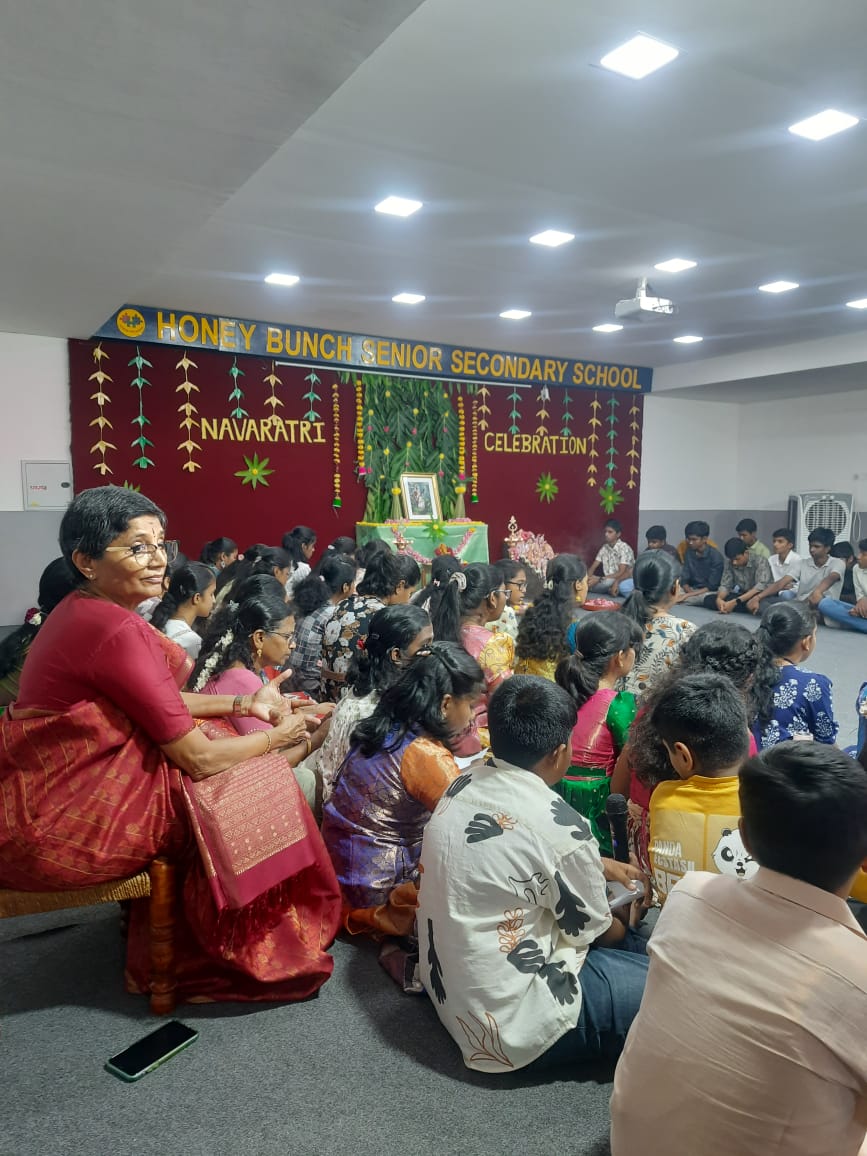 Honey Bunch joyfully celebrated Navaratri with vibrant colours, devotion, and togetherness. The students participated with great enthusiasm, showcasing traditional attire, cultural activities, and festive spirit. The beautifully arranged Golu and melodious bhajans added charm to the celebration, giving children a meaningful experience of our rich traditions. The event created a joyful and memorable atmosphere for everyone.